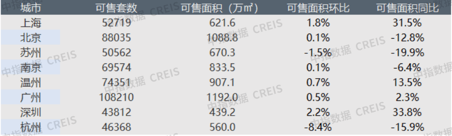 监测的8个代表城市整体库存环比略降0.42%。其中,一线城市中,北上广深4城市环比均上涨,其中深圳涨幅最大,为2.21%;上海次之。二线城市中,温州、南京环比均略有上涨,涨幅分别为0.74%和0.12%;杭州、苏州则环比下降,其中杭州降幅明显,为-8.38%。