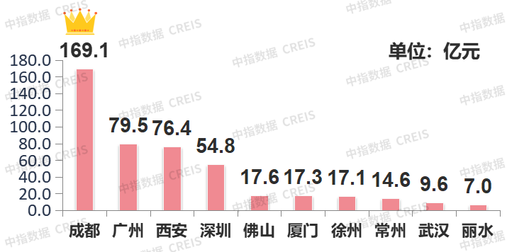 ▍总体情况:整体供应量环比走高,成都收金169亿领跑
