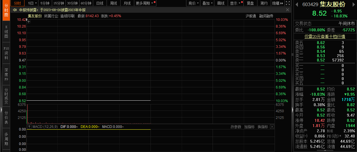 即便如此,负面消息还是影响了的股价。8月21日早盘开盘,便“一字”跌停。截至发稿前,报8.52元,跌幅为10.03%,总市值为44.69亿元。