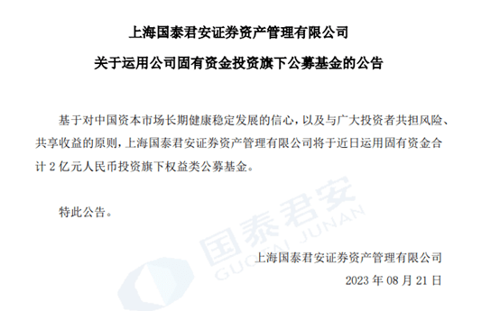 比如21日上海国泰君安证券资产管理有限公司发布公告称,基于对中国资本市场长期健康稳定发展的信心,以及与广大投资者共担风险、共享收益的原则,上海国泰君安证券资产管理有限公司将于近日运用固有资金合计2亿元人民币投资旗下权益类公募基金。