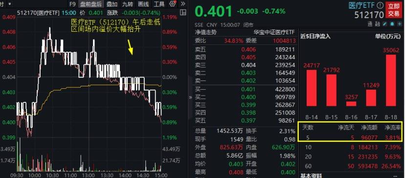 资金动向上,医疗ETF(512170)场内几乎全天维持溢价交易,午后走低区间溢价大幅走阔,反映买盘资金相对强势,资金或继续放逢跌涌入。数据显示,此前5个交易日,医疗ETF(512170)已连续获资金净申购合计超9.6亿元。