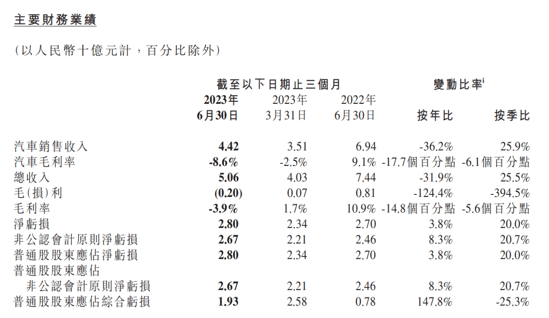 销量方面,总交付量为23205辆,比上一季度增长了27.3%。虽然销量增加,但毛利率却暴跌,为-3.9%——Q1的毛利率还是1.7%,而2022年同期为10.9%。