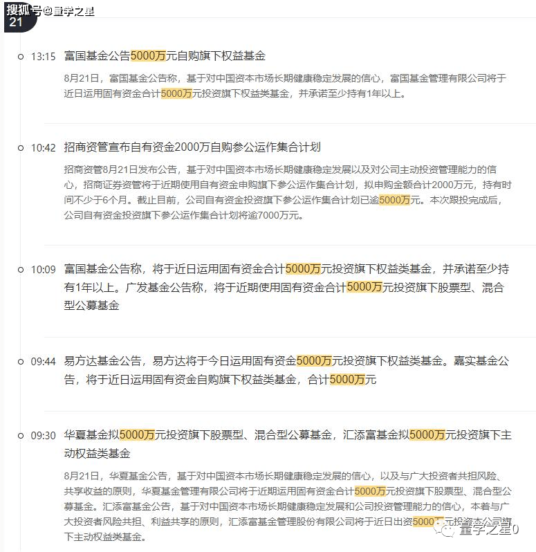 易方达、嘉实基金、华夏基金、汇添富、富国基金、广发基金等多家基金均公告出资5000万自购旗下主动权益类基金。