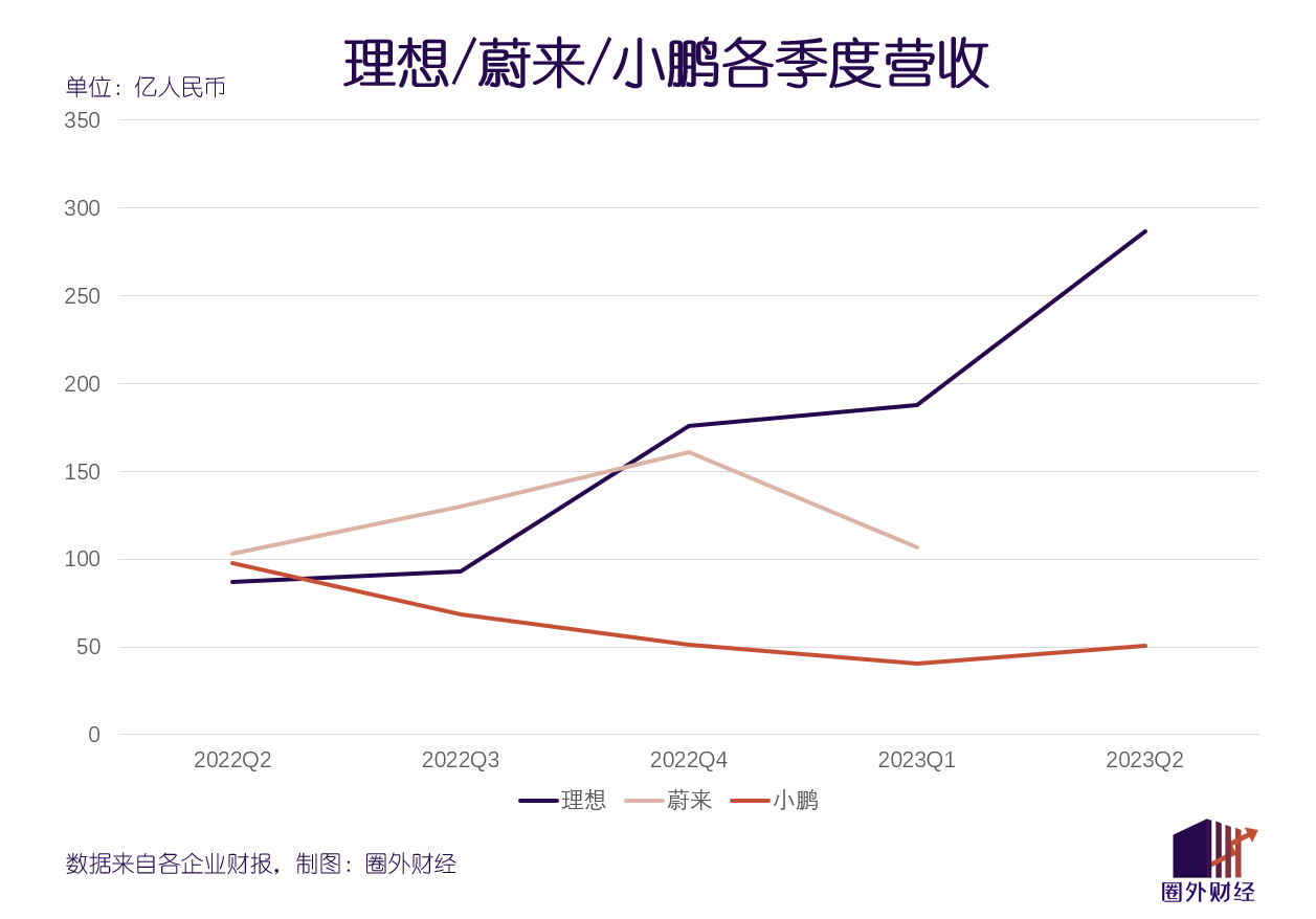 比营收,三家车企分出了三个等级:理想>蔚来>小鹏。