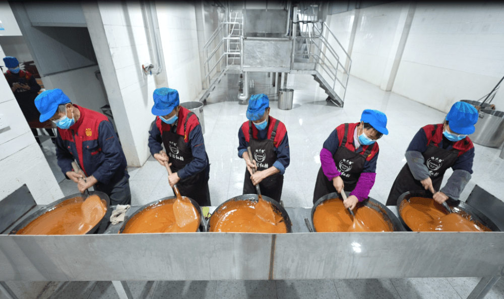 ▲师傅们正古法炼制红糖。摄影何聚