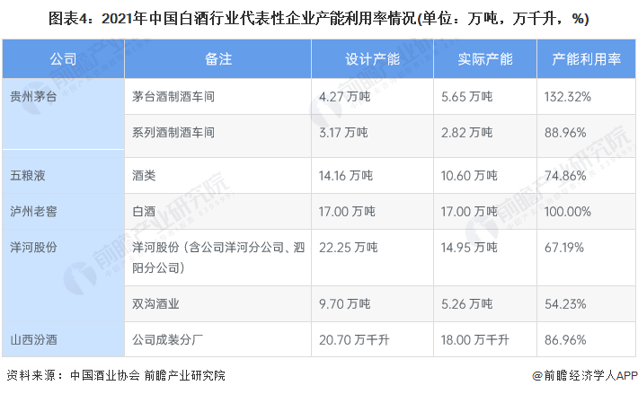 ——贵州茅台和泸州老窖的产能利用率远高于同行