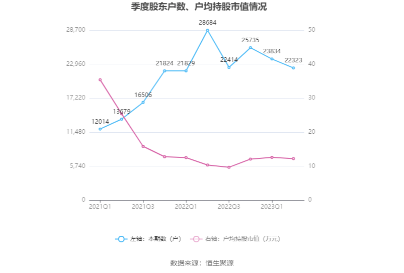 筹码集中度方面,截至2023年二季度末,公司股东总户数为2.23万户,较一季度末下降了1511户,降幅6.34%;户均持股市值由一季度末的12.59万元下降至12.23万元,降幅为2.86%。