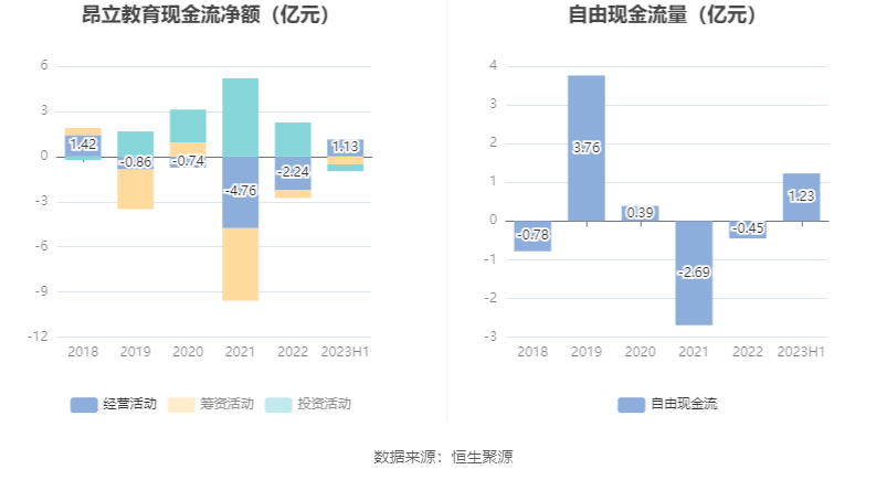 进一步统计发现,2023年上半年公司自由现金流为1.23亿元,上年同期为-1.65亿元。