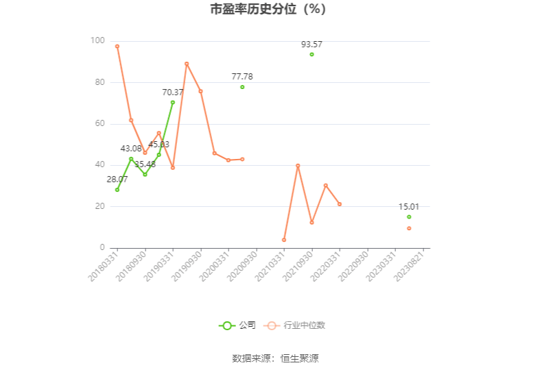 市盈率为负时,不显示当期分位数,会导致折线图中断。