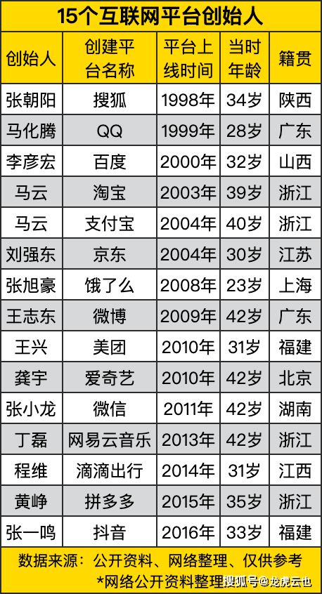 15个互联网平台创始人,他们何许人也?华东籍贯占比高