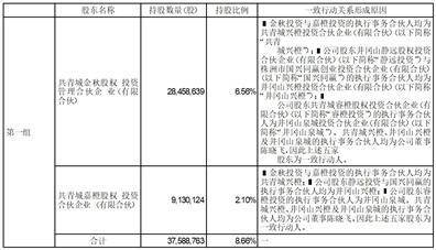 28,458,639股,占公司总股本的6.56%;共青城嘉橙股权投资合伙企业(有限合伙)(以下简称“嘉橙投资”)持有公司股份9,130,124股,占公司总股本的2.10%。金秋投资与嘉橙投资为一致行动人,合计持有公司股份37,588,763股,占公司总股本的8.66%。上述股份均为无限售条件流通股且来源均为公司首次公开发行股票并上市前取得的股份。