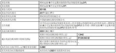 注: 本基金每10份基金份额发放红利0.4980元人民币。