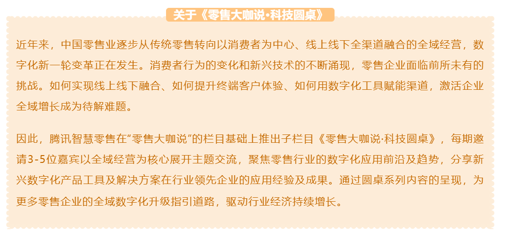 在行业渠道数字化的大势下,近期腾讯智慧零售《零售大咖说·科技圆桌》以“渠道数字化”为主题举办圆桌,我受邀与太古可口可乐中国区数字与资讯科技总经理冯柯、纷析咨询创始人兼CEO宋星、腾讯智慧零售垂直行业解决方案总监李有祥参与讨论,我们针对渠道数字化面临的障碍、推进的原则以及成功案例经验等进行了深度地分析和探讨,希望给更多正在进行或者想要进行渠道数字化转型的快消企业提供可参考的破局之道。