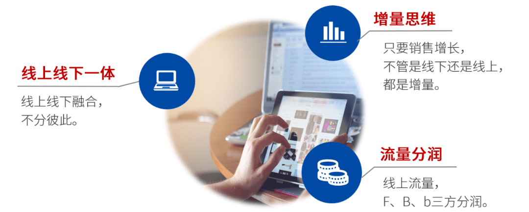 在流量分润原则下,确保了B和b贡献流量的利润。全渠道愿意把用户放心交给厂家运营,并在线下配合下,保证全渠道利益最大化。