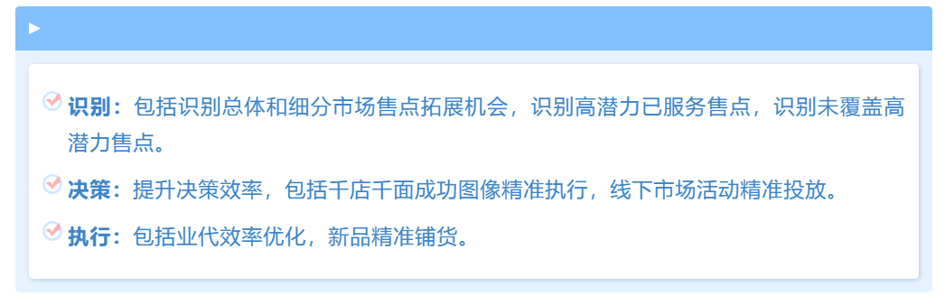 DRTM则主要帮助太古可口可乐实现零售渠道的市场布局与渗透管理,冯柯认为DRTM能够聚焦快消企业灯下黑的问题,解决企业对市场总体认知不完整、获取数据的时效性差、决策严重滞后、销售策略无法快速响应和执行等普适性痛点。