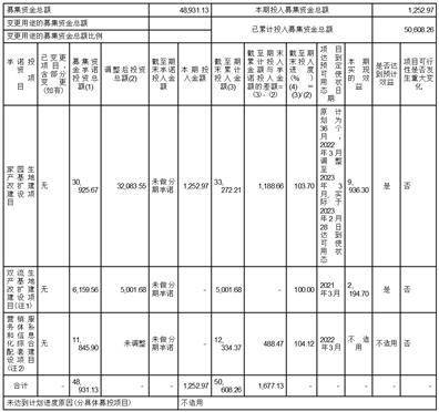 2023年半年度,公司首次公开发行股票募集资金投资项目投入资金 12,529,741.45元,加上以前年度已投入金额493,552,866.61元,首次公开发行股票募集资金投资项目累计投入金额506,082,608.06元。鉴于“家园生产基地改扩建建设项目”募集资金全部使用完毕,至此,公司首次公开发行股票募投项目全部结项。根据《上海证券交易所上市公司自律监管指引第1号一一规范运作》规定,募投项目全部完成后,节余募集资金(包括利息收入)低于500万或者低于募集资金净额5%的,可以免于履行董事会审议以及独立董事、监事会、保荐机构发表明确同意意见程序。募集资金专户(银行账号:631322462)已于2023年3月注销,注销当日银行结息后账户结余利息收入13,995.16元用于补充公司流动资金。
