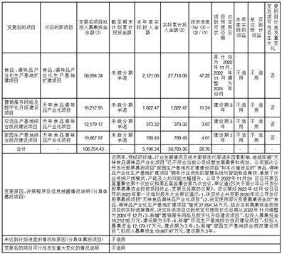 2、首次公开发行股票募集资金投资项目“家园生产基地改扩建建设项目”已按照计划实施完毕,募集资金专户(银行账号:631322462)余额为0元,达到预定可使用状态,满足结项条件。为方便账户管理,公司已于2023年3月注销该账户。募集资金专户注销后,公司、天味家园与保荐机构东兴证券股份有限公司及中国民生银行成都分行共同签署的《上市募集资金专户存储四方监管协议》相应终止。