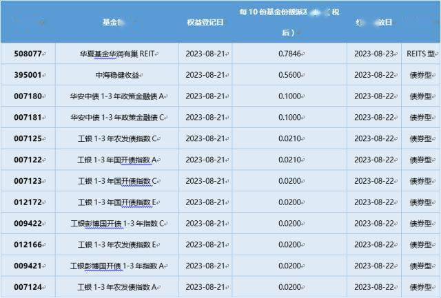 四、8月21日基金分红一览