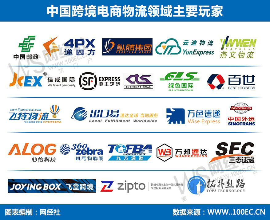 而在中国跨境电商物流领域,随着跨境电商行业的快速发展,也带动了跨境电商物流的蓬勃发展。据网经社企业库(COP.100EC.CN)显示,当前,在跨境电商物流产业链中,主要的玩家包括:中国邮政、递四方、纵腾集团、华贸物流、云途物流、燕文物流、佳成国际、顺丰速运、中国外运、百世集团、绿色物流集团、飞特物流、出口易、万色速递、万邦速达、心怡科技、斑马物联网、九方通逊、三态速递、飞盒跨境、至美通、拓扑丝路等。