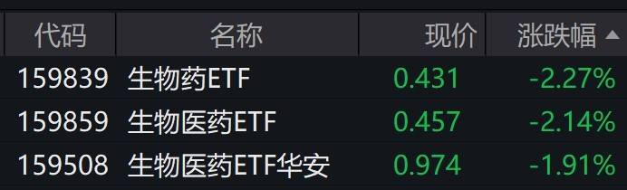 受盘面影响,跟踪国证生物医药指数的生物药ETF、生物医药ETF跌超2%,创上市新低。