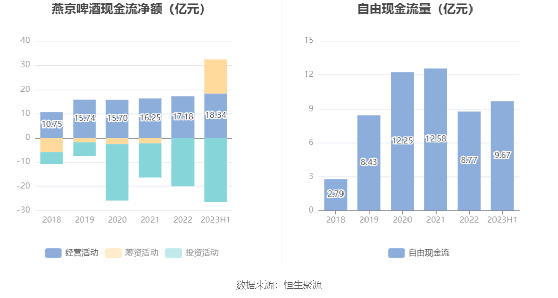 进一步统计发现,2023年上半年公司自由现金流为9.67亿元,相比上年同期下降13.01%。