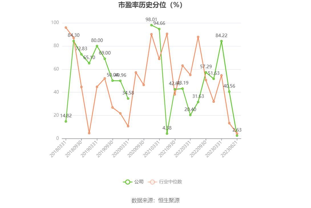 市盈率为负时,不显示当期分位数,会导致折线图中断。
