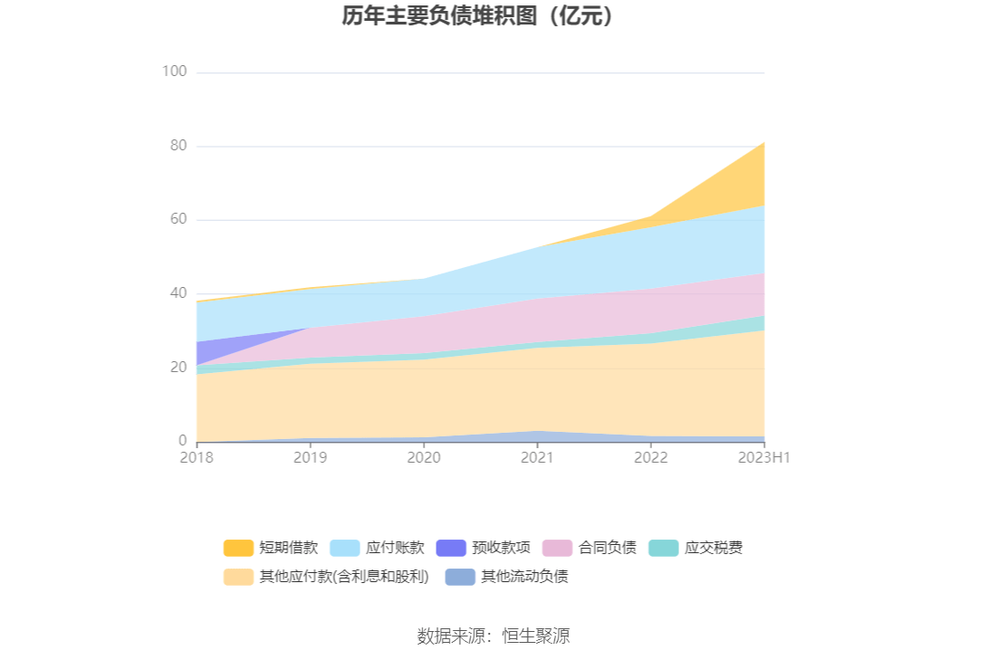 2023上半年,公司经营活动现金流净额为18.34亿元,同比增长3.67%;筹资活动现金流净额13.97亿元,同比增加6.08亿元,主要系银行贷款增加所致;投资活动现金流净额-26.46亿元,上年同期为-23.4亿元。