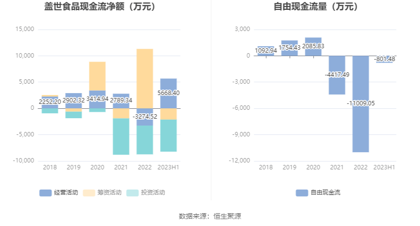 进一步统计发现,2023年上半年公司自由现金流为-801.48万元,上年同期为-5220.65万元。