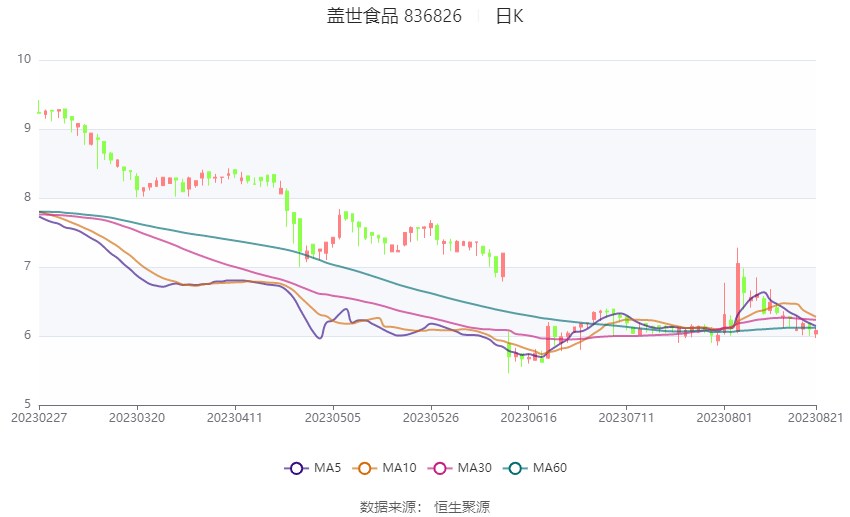 以8月21日收盘价计算,盖世食品目前市盈率(TTM)约为25.45倍,市净率(LF)约为2.36倍,市销率(TTM)约为1.72倍。