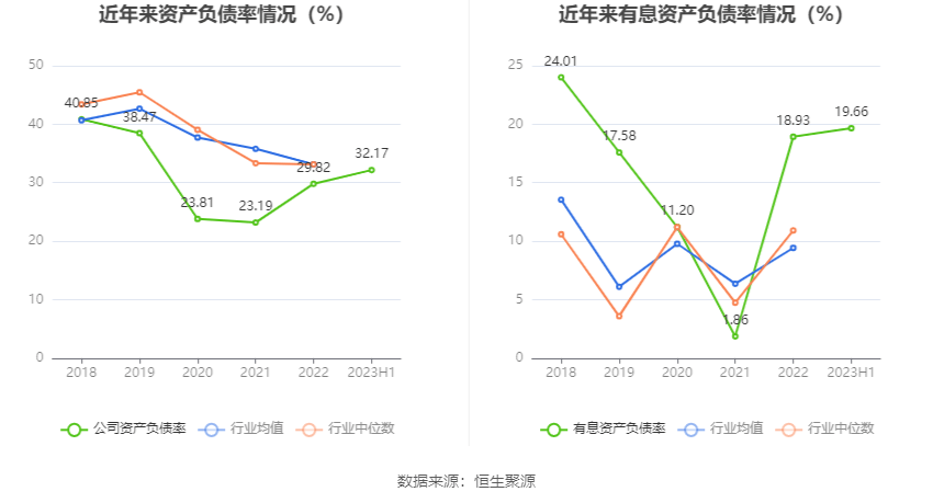 偿债能力方面,公司2023年二季度末资产负债率为32.17%,相比上年末增加2.35个百分点;有息资产负债率为19.66%,相比上年末增加0.73个百分点。