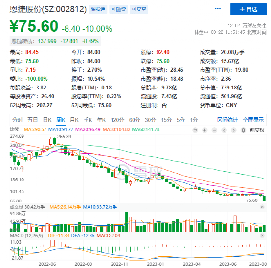 今年以来,恩捷股份股价持续低迷,年内跌幅已达42.3%。作为曾经千亿市值的大白马、电池隔膜巨头,在今日股价暴跌后,恩捷股份当前总市值仅余739亿元。
