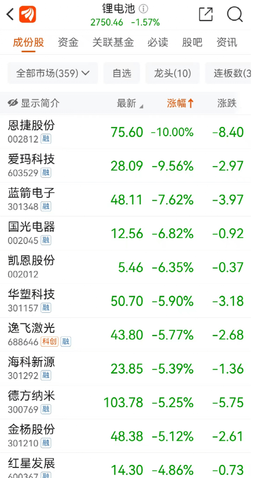 锂电池板块走低