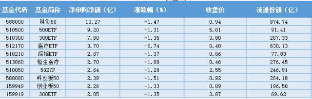 细分到资金流动情况上来看,21日净申购金额最大的为科创50(588000),当日净申购金额为13.27亿元。然后还有500ETF(510500)、300ETF(510300)净申购金额超过5亿元,申购金额分别为9.20亿元、7.80亿元。其余ETF净申购金额较小,均未超过5亿元。