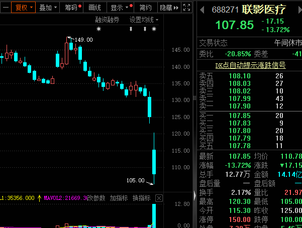 除联影医疗外,早盘跌幅较大的还有建龙微纳、科源制药、大宏立、恩捷股份、贝瑞基因等。