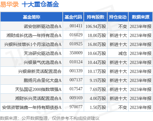 重仓易华录的前十大公募基金请见下表: