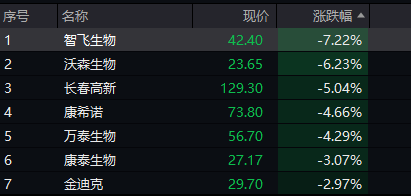 美容护理、综合、电力设备、商贸零售等板块也跌幅居前。
