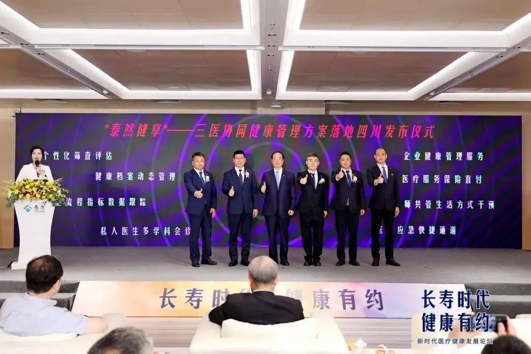 本次开业活动现场,四川泰康医院还联合泰康人寿四川分公司、泰康养老四川分公司、泰康在线四川服务中心、泰康之家·蜀园共同发布了“‘泰然健享’——三医协同健康管理方案”,可为泰康用户提供包括个体化体检筛查、全方位健康评估、全流程指标数据跟踪、私人医生多学科会诊、商保直付、企业健康管理等在内的系列贴心、尊享的优质医疗健康服务。