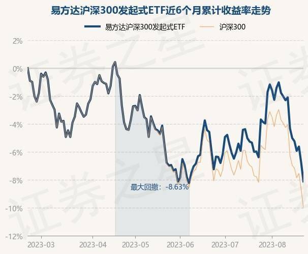 8月21日,易方达沪深300发起式ETF最新单位净值为1.8128元,累计净值为1.8128元,较前一交易日下跌1.44%。历史数据显示该基金近1个月下跌2.27%,近3个月下跌3.55%,近6个月下跌8.07%,近1年下跌7.89%。该基金近6个月的累计收益率走势如下图: