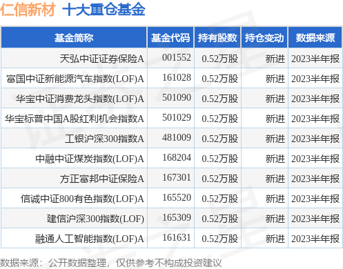 根据2023半年报公募基金重仓股数据,重仓该股的公募基金共165家,其中持有数量最多的公募基金为天弘中证证券保险A。天弘中证证券保险A目前规模为11.85亿元,最新净值0.8935(8月21日),较上一交易日下跌3.12%,近一年上涨10.17%。该公募基金现任基金经理为陈瑶。陈瑶在任的基金产品包括:天弘沪深300ETF联接A,管理时间为2018年2月12日至今,期间收益率为14.02%;天弘中证500ETF联接A,管理时间为2018年2月12日至今,期间收益率为20.99%;天弘上证50指数A,管理时间为2018年2月12日至今,期间收益率为9.33%;