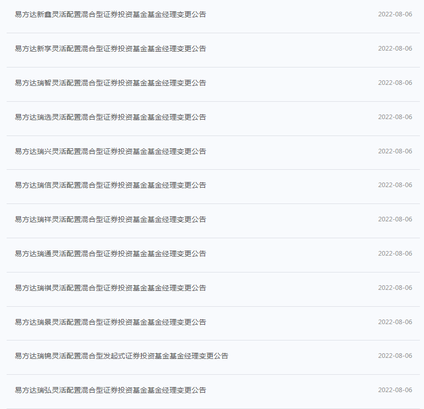 2022年8月5日至6日,杨康在这两天内接手了24只产品。红星资本局梳理发现,当年8月,易方达先是披露旗下易方达裕鑫A等21只公募基金的人事变动,基金经理韩阅川因个人原因离职,由杨康接任;不久,易方达再次公告称,易方达颐鑫配置等3只养老金产品的投资经理由崔欣、韩阅川变更为崔欣、杨康。
