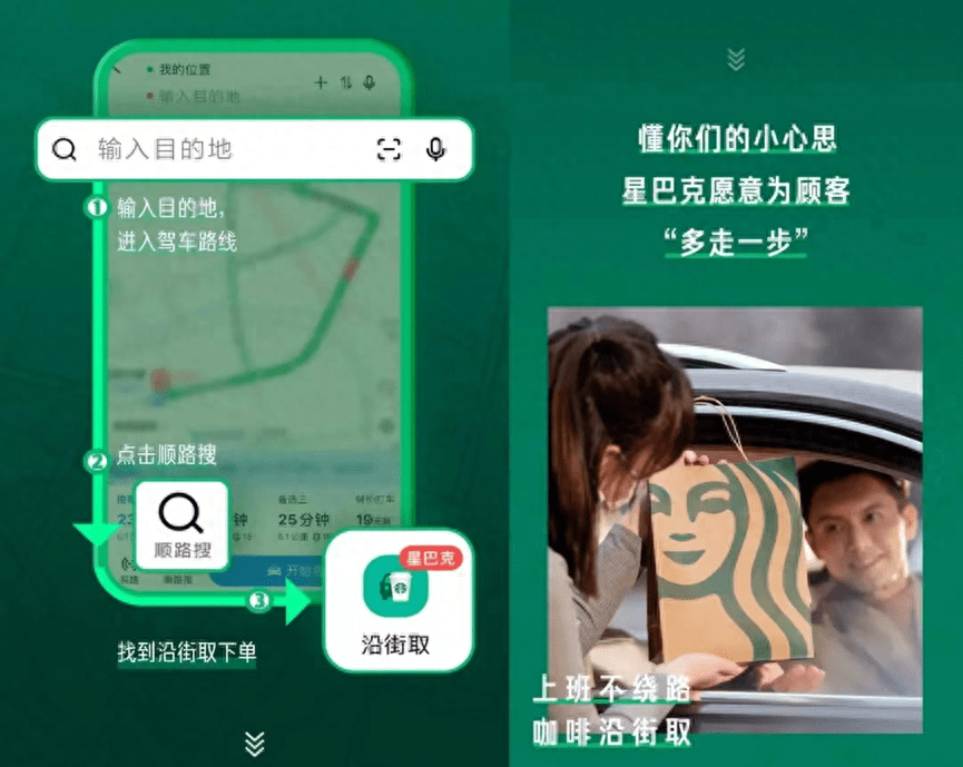 除此之外,星巴克还在寻找新的增量空间。今年3月,星巴克联手高德推出“沿街取”服务,消费者在线点单,通勤高峰期不必下车,沿街打开车窗就能拿到星巴克咖啡,该项服务已在北京、上海约150家门店上线,预计一年内,全国将有超1000家星巴克门店提供“沿街取”服务。