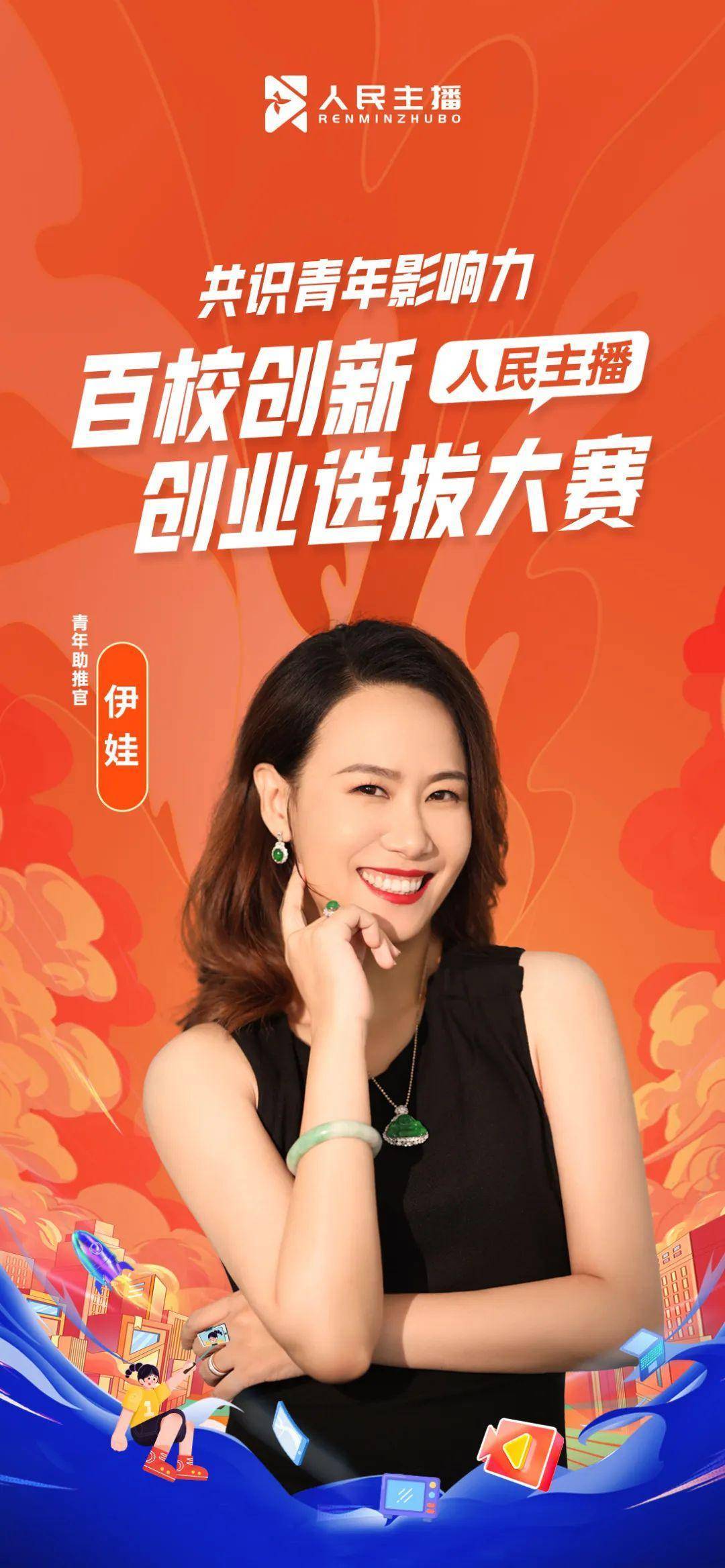 “人民主播·百校创新创业选拔大赛”近日揭晓一位全新的青年助推官——青年企业家伊娃。