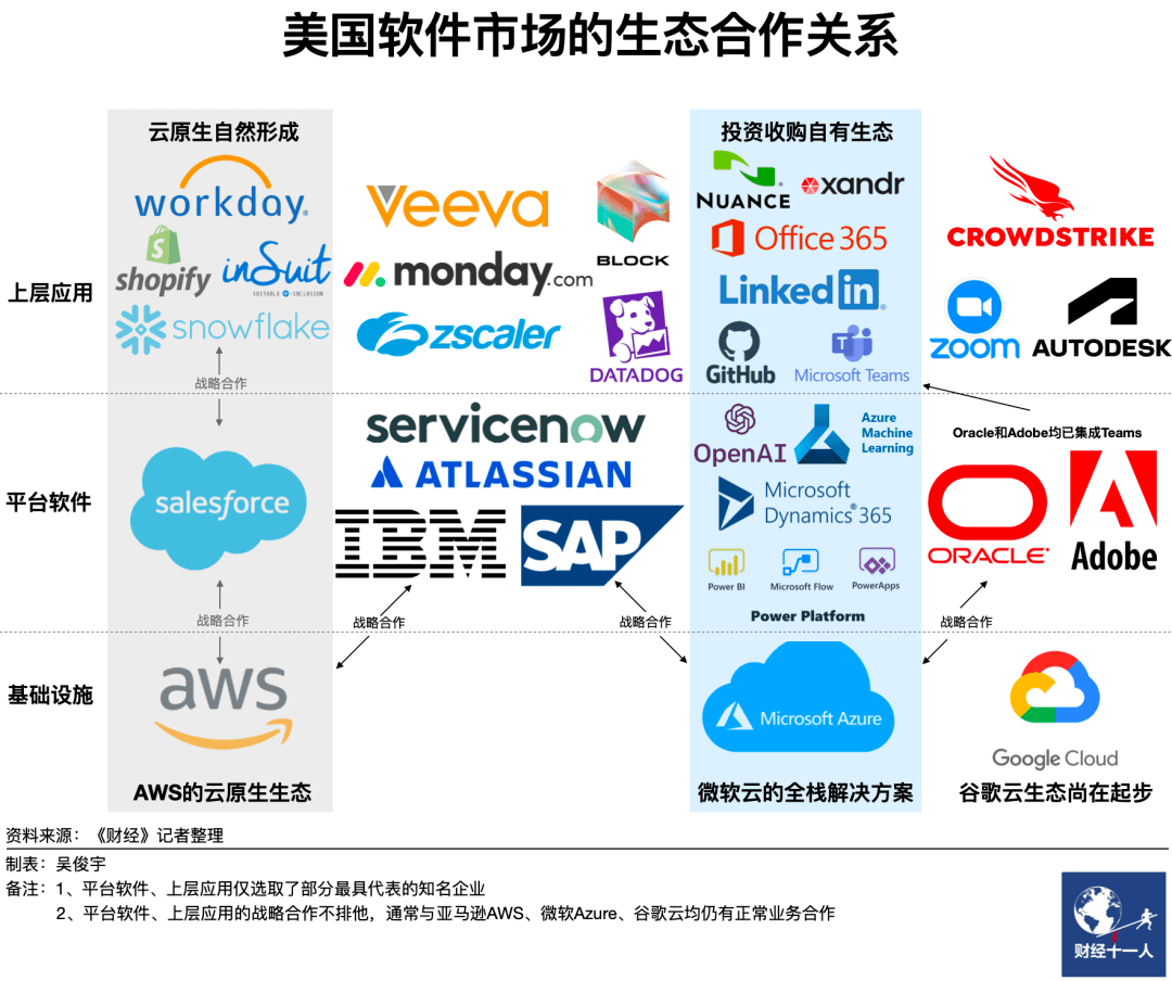 历史上最成功的软件公司,如Oracle、SAP、Salesforce都是技术变革的历史产物。它们在技术拐点来临时依靠合作伙伴不断壮大生态,进而成长为千亿美金市值的平台软件企业。SAP、Oracle踩中了1980年代IT技术变革,分别打入制造、金融业,迄今难被替代。Salesforce赶上2010年后的云计算浪潮,开辟了SaaS/PaaS这一云服务赛道,成为云计算产业的奠基者之一。