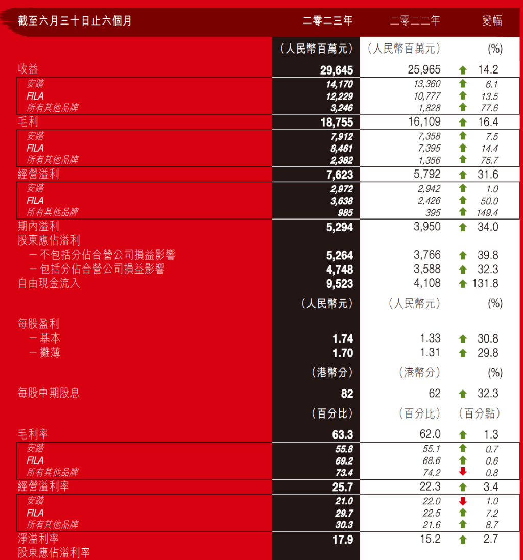 零售市场复苏与多品牌协同模式战略加持下,安踏在2023年上半年营收、净利双双大幅增长。