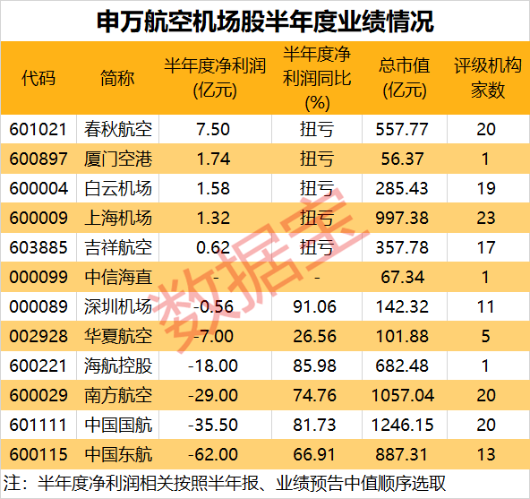 证券时报·数据宝统计,截至目前,申万航空机场板块中,仅中信海直尚未发布半年度相关报告。