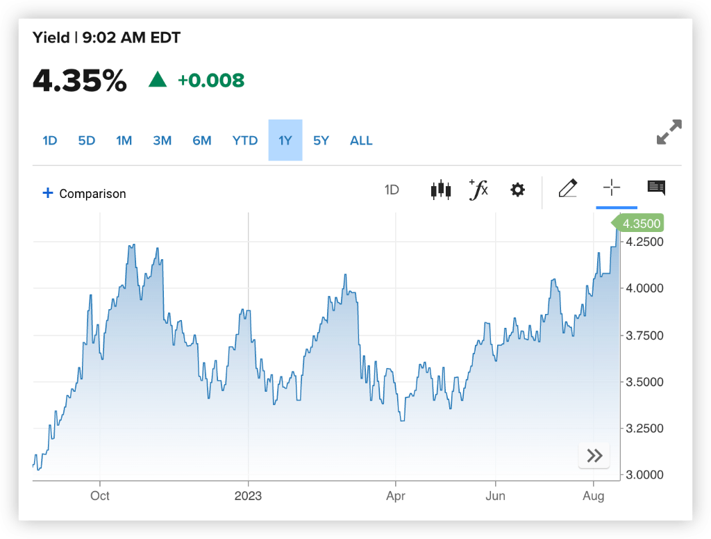 重磅会议前夕,美债疯狂“作妖”。“全球资产定价之锚”十年期美债收益率已升至4.35%,续创15年新高。英国和德国的10年期国债收益率最近分别创下2008年和2011年以来的最高水平。