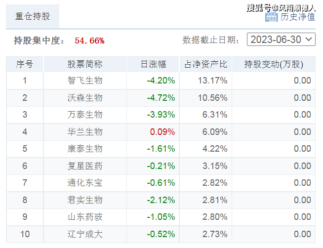 该基金的十大持仓中智飞生物、沃森生物、万泰生物跌幅较大,前十大持仓占总持仓54.66%,持股集中度集中于医药(疫苗)方向,基金净值相对跑输市场(属于医药细分行业被动型指数基金)【基金规模6.63亿元】。