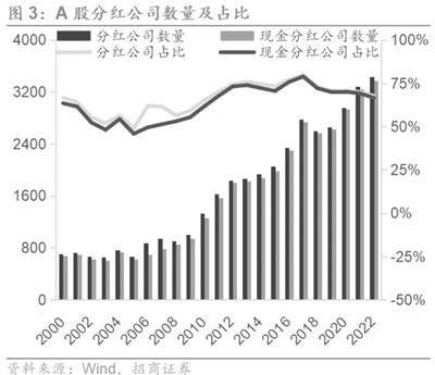 近年来A股分红公司数量及占比 数据来源:Wind,招商证券