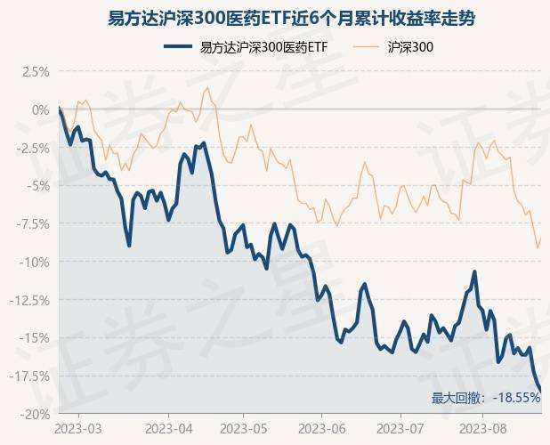 8月22日,易方达沪深300医药ETF最新单位净值为0.4083元,累计净值为1.6332元,较前一交易日下跌0.58%。历史数据显示该基金近1个月下跌5.0%,近3个月下跌11.78%,近6个月下跌18.5%,近1年下跌15.48%。该基金近6个月的累计收益率走势如下图: