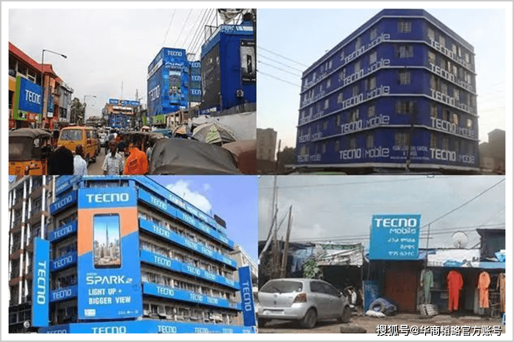 “从内罗毕的机场道路到坎帕拉的贫民窟,只要有墙的地方,就少不了Tecno的涂墙广告。”甚至,连马路边的电线杆也有它的身影。